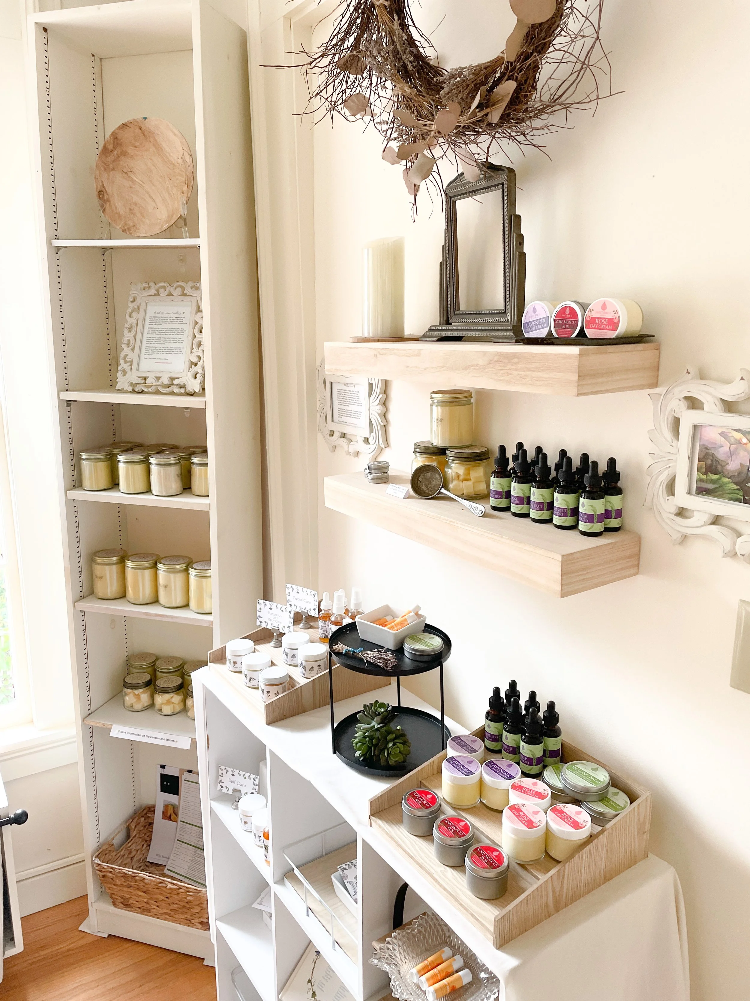 Skincare Consignor - We have space for 3 skincare consignors who share a display together and pay a monthly rent of $25, plus pay 20% of all sales to the gallery.